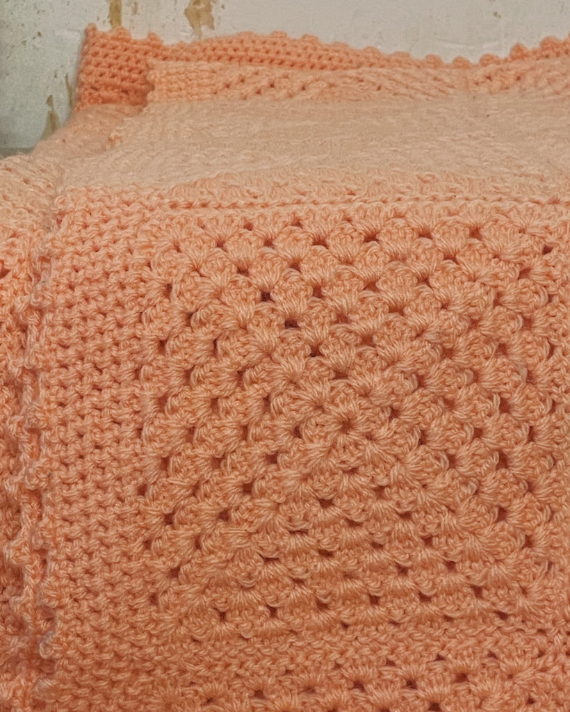 Wat een zoet spreitje is dit! Hij is gebreid van prachtig dik wol en heeft een mooie retro oud-roze / zalm kleur. Leuk voor in een ledikant, voor in de kinderwagen of lekker als dekentje voor in de auto onderweg.