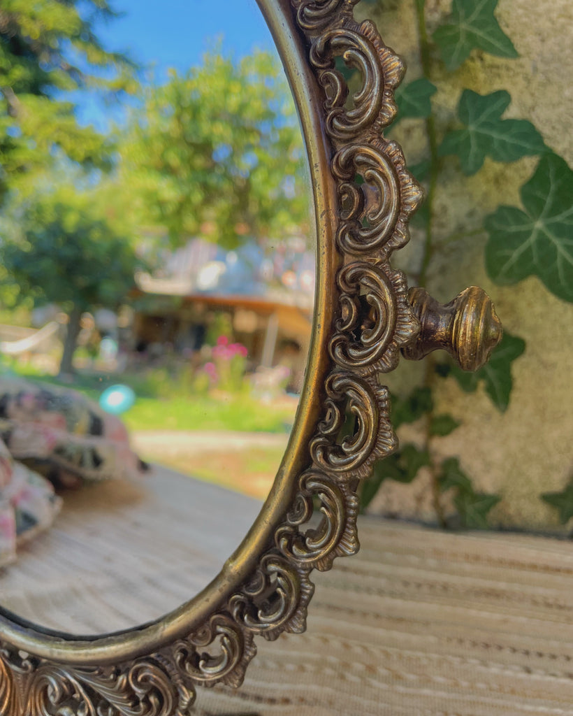 Wat een beauty! We vonden deze brocante make-up spiegel bij 1 van onze vaste inkoop adressen in een klein stadje in het zuiden van Frankrijk. Een plaatje in je bad- of kleedkamer of gewoon op een kastje of mooie plank in je woonkamer natuurlijk :)