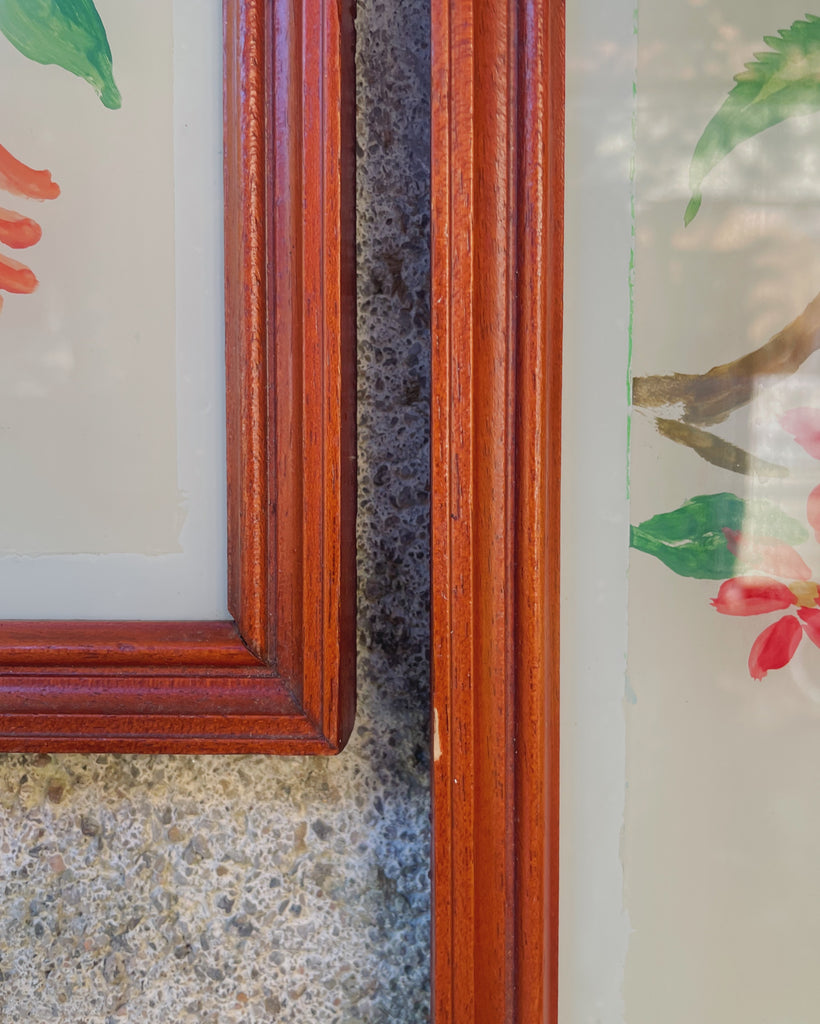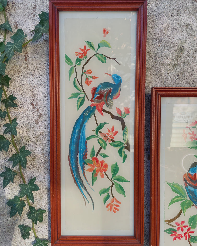 Wow, wat een prachtige prenten zijn dit! De lange smalle houten lijsten zijn identiek en in goede vintage conditie. De tekeningen zijn vol van kleur en vormen een mooi paar. Sfeer gegarandeerd :) We vonden deze set van 2 lijsten in één van onze meest favoriete Franse vintage winkeltjes in de buurt.
