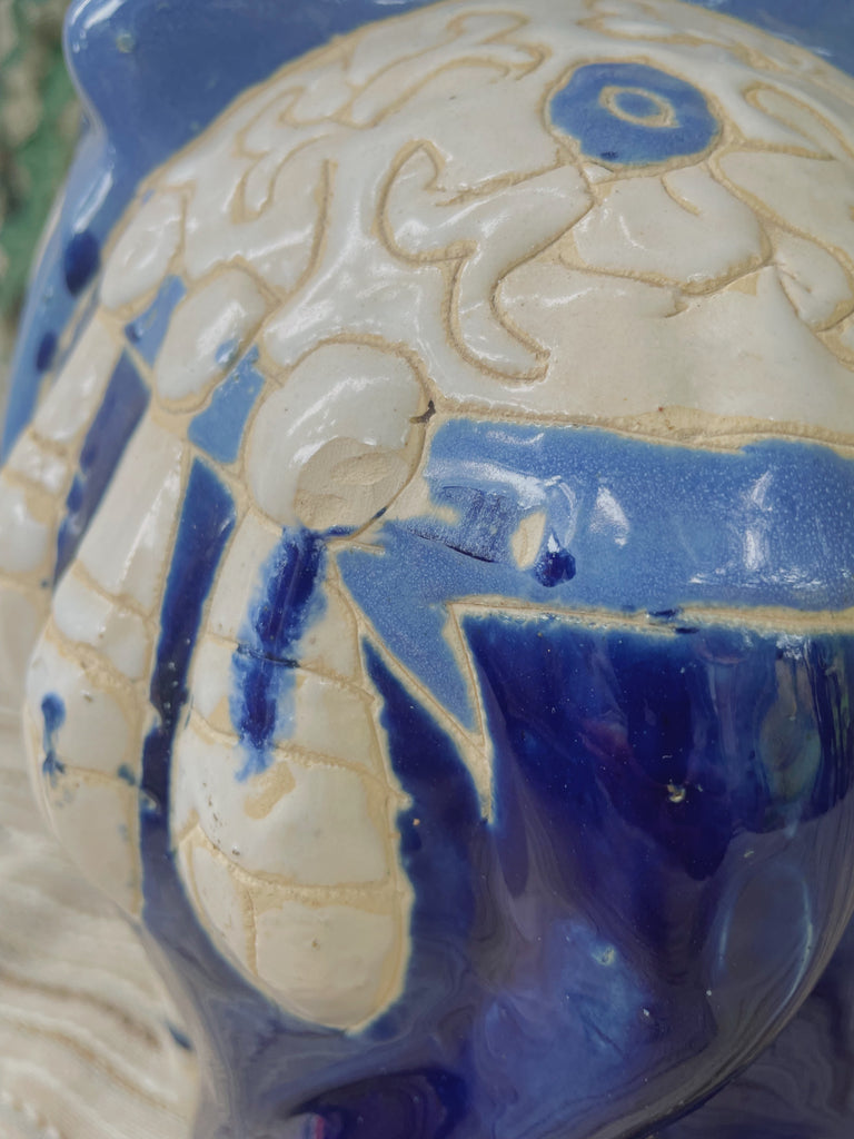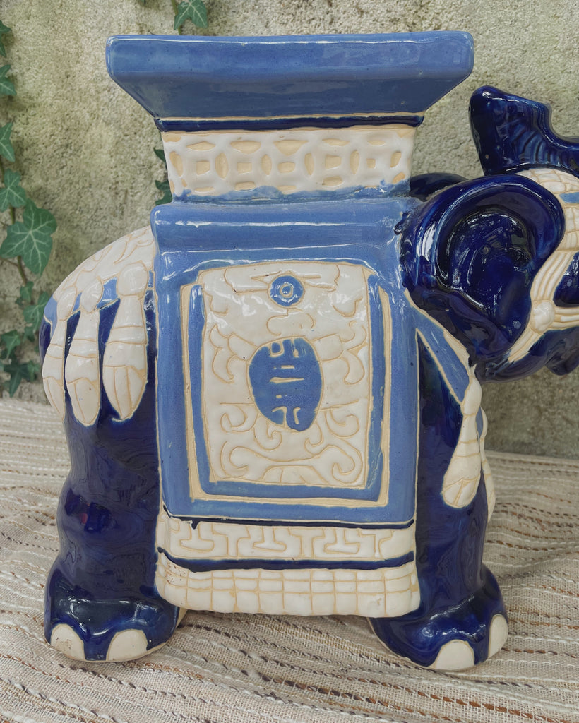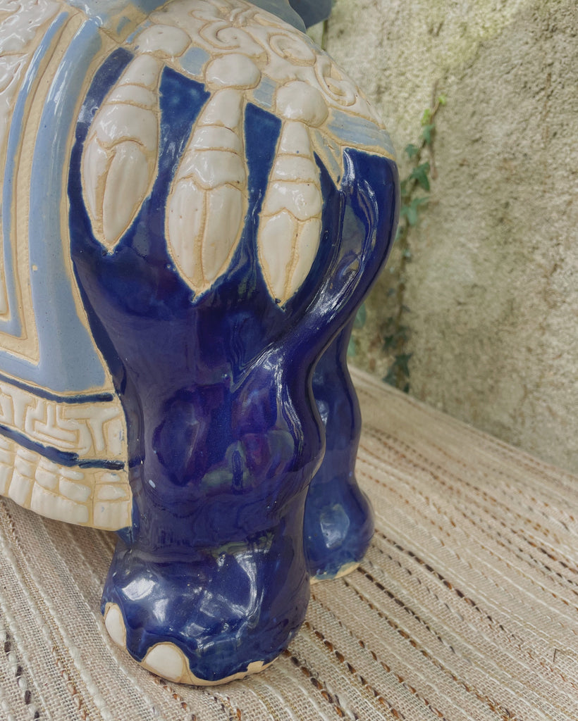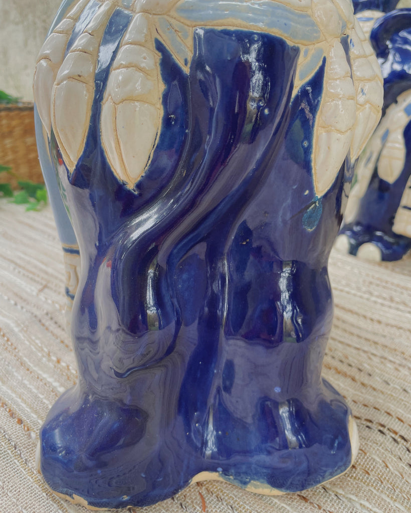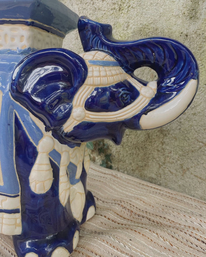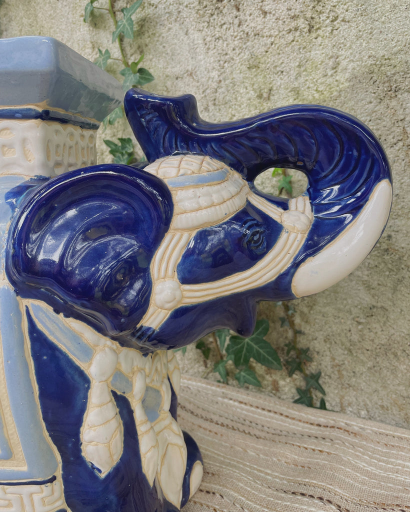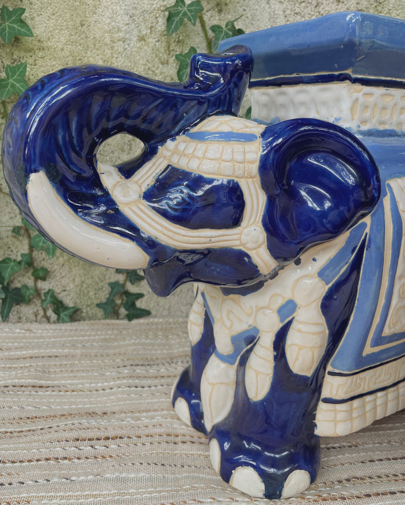 Deze grote vintage olifanten in een prachtige diep blauwe kleur zijn volledig gemaakt van keramiek en zijn ook zonder plant erop te gek om neer te zetten. De mooie kleuren in het keramiek barsten namelijk van de details. Extra bijzonder is deze set van 2 identieke olifanten. Zo vinden we ze niet vaak! Een echte eyecatcher dus in de plantenhoek of als sierobject :)