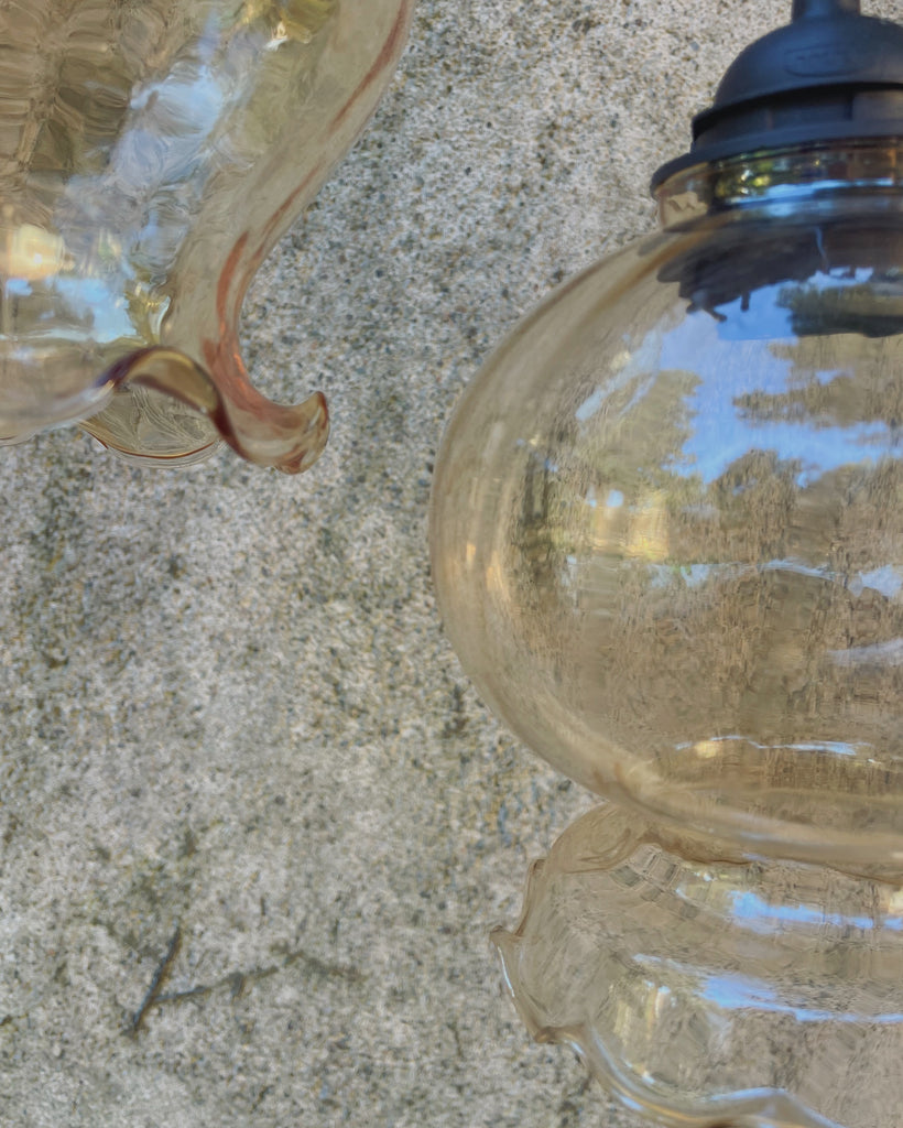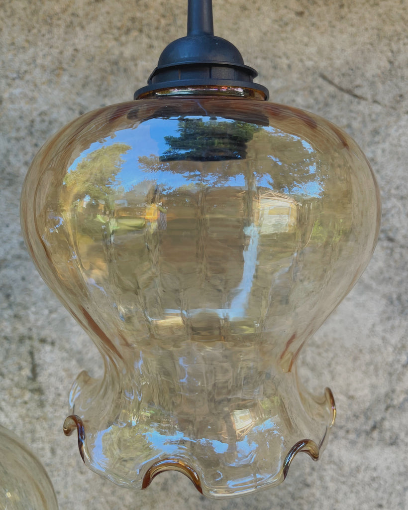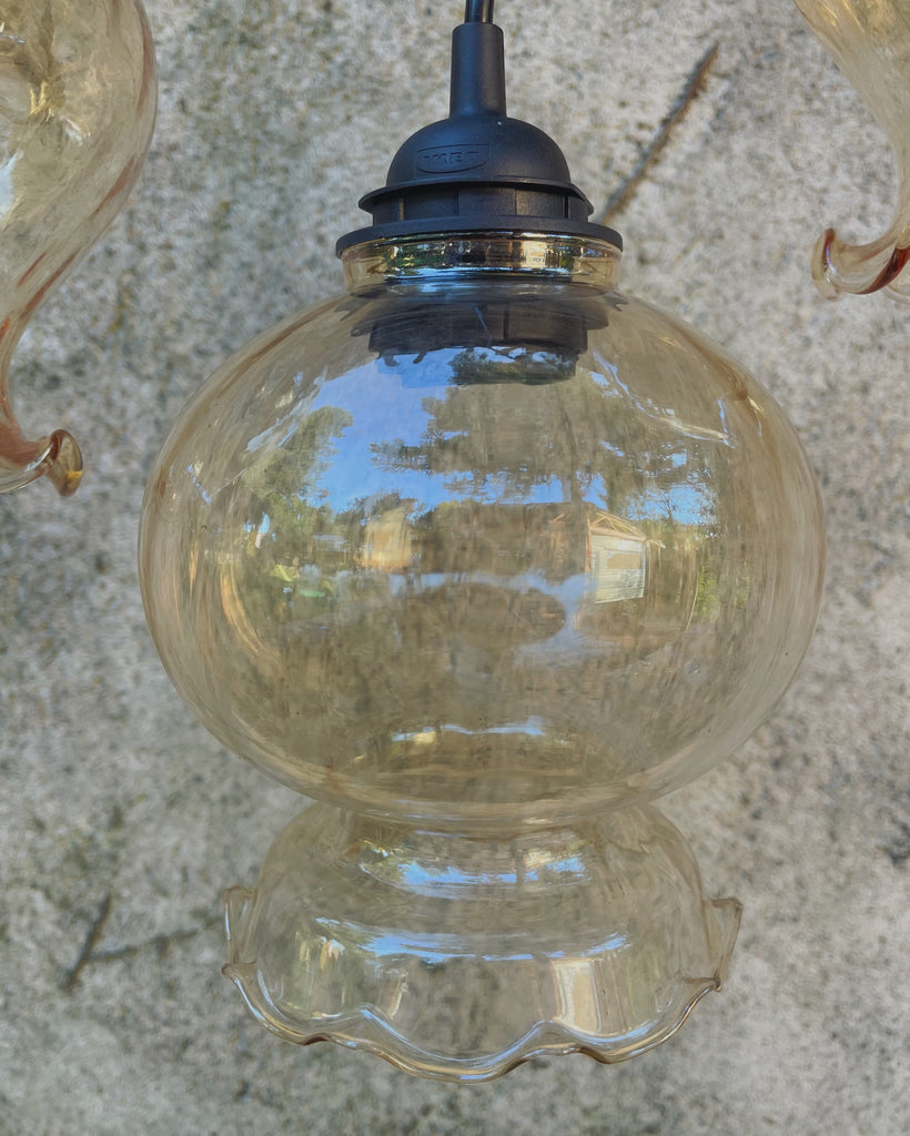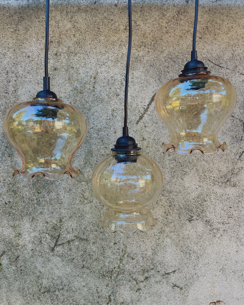 Sfeer gegarandeerd met deze fijne Franse lampenkapjes! Deze keer 3 transparante kapjes met mooi geschulpt randje onderaan. We staan altijd op de uitkijk voor mooie unieke kapjes en vinden ze o.a. op vide greniers, in tweedehands winkels en kringlopen.