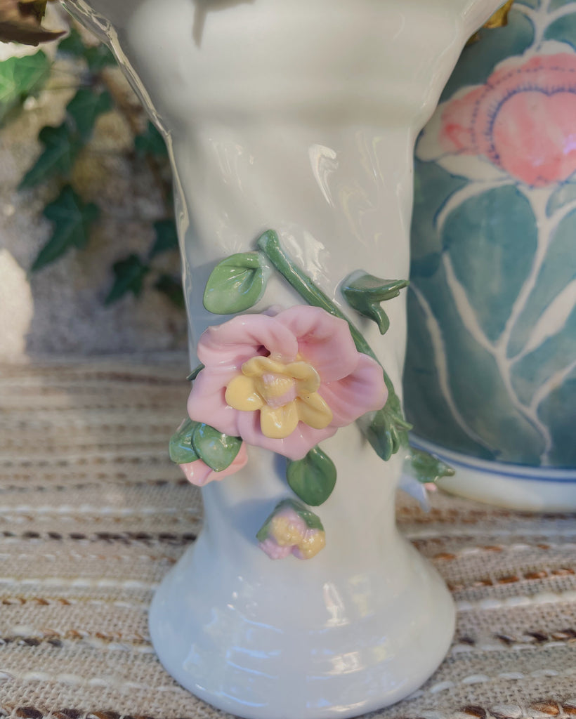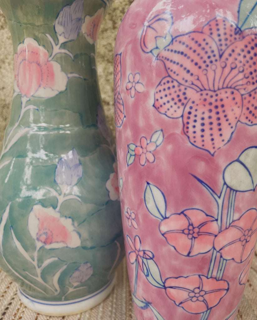 We combineren graag verschillende soorten vazen voor een interessant geheel. In de ene vaas wat droogbloemen, de andere gewoon leeg om als 'object' te bewonderen. Kleuren die overlappen, prints die soms een beetje 'clashen' om het spannend te houden en vooral items samenstellen die sfeer toevoegen in huis :)